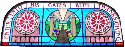 Enter Into His Gates with Thanksgiving The centre section of this window shows the